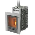 • Вертикальная дверца с жаропрочным стеклом увеличивает угол обзора на пламя и сгорающие дрова.
