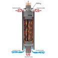 • Стартовая труба дополнена экономайзером. Экономайзер устанавливается в самом горячем месте печи: на дымоходе. Используется для повышения КПД за счет дополнительного отбора тепла от дымохода. Дымоход-экономайзер помогает быстрее прогреть парную комнату.