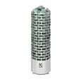 Электрокаменка выполнена в напольном варианте цилиндрической формы. Напряжение питания– 220/380В. Данная модель укомплектована ТЭНами, расположенными в виде треугольника. Внизу каменки располагается бак для воды, который является парогенератором.